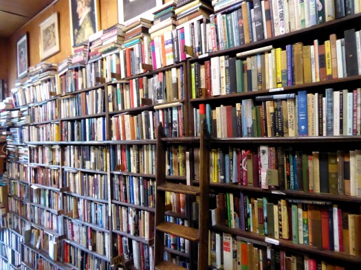 Hier stimmt nämlich alles: Die Auswahl ist sehr, sehr gut, die Bücher sind alle antiquarisch und dadurch günstig (aber in sehr gutem Zustand), die meterhohen Decken erfüllen jede Traumvorstellung davon, wie eine Buchhandlung auszusehen hat, und durch die Lage sind es vor allem die Nachbar*innen, die hier einkaufen. Nicht zuletzt war der Besitzer zumindest bei meinem Besuch sehr freundlich und schenkte mir, da Independent Bookstore Day war, zum Einkauf ein Westsider-Books-T-Shirt.