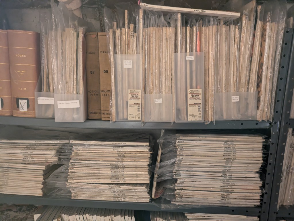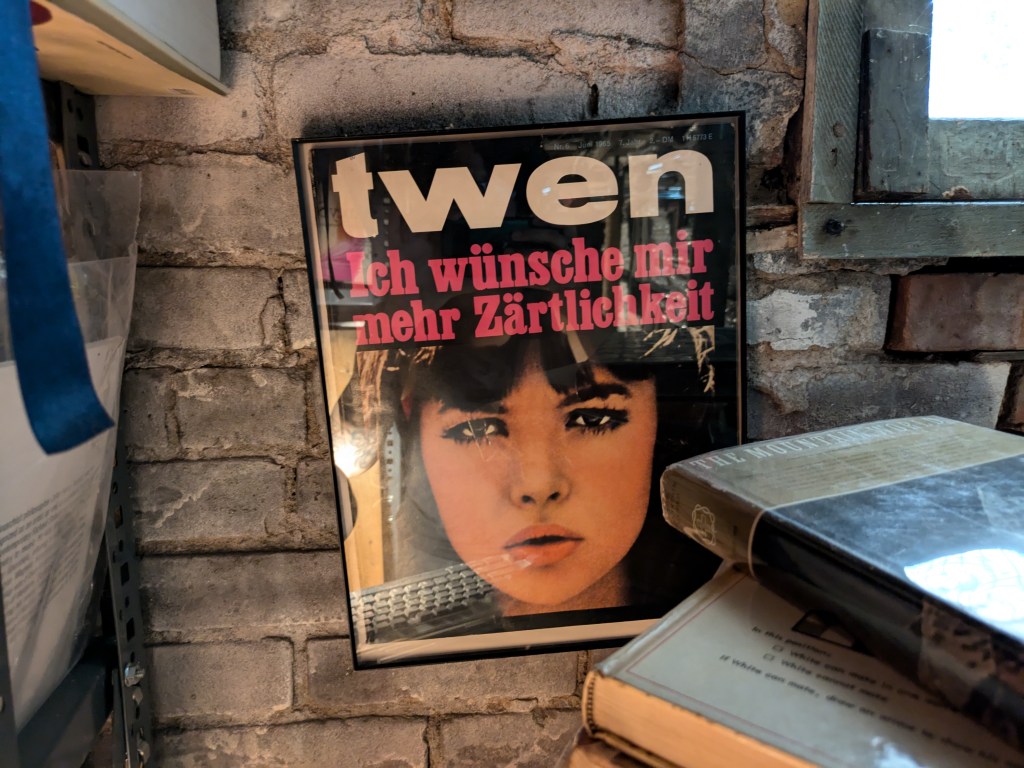 Es seien vor allem Architektur- und Fashionstudierende, die zu ihm kämen, erzählt er. Kein Wunder: In der engen Regalwelt in seinem Keller findet man, begleitet von Katze Squirty, unglaubliche Schätze, italienische „Vogue“-Ausgaben aus den 1960ern, alte „Twens“ (eine deutsche Zeitschrift; ich war sehr versucht, welche mitzunehmen) oder „New Yorker“, die 100 Jahre zurückdatieren.